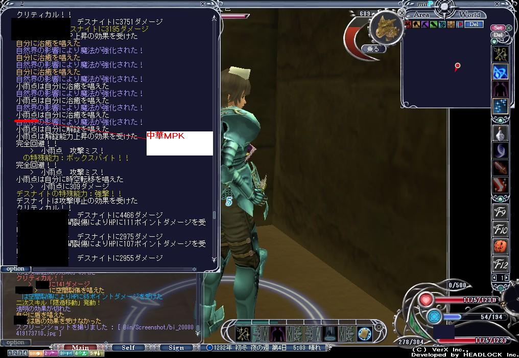 | D | [bi_up2164.jpg] | プラーナにて狩場独占&MPK | 60kB | 2008/04/13(Sun)10:09 | sarasi.jpg |