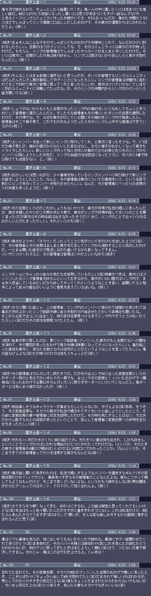 | D | [bi_up1192.jpg] | VIPからきますた | 15kB | 2006/11/04(Sat)16:00 | ハメ狩りギルメン募集のお知らせ.JPG |
