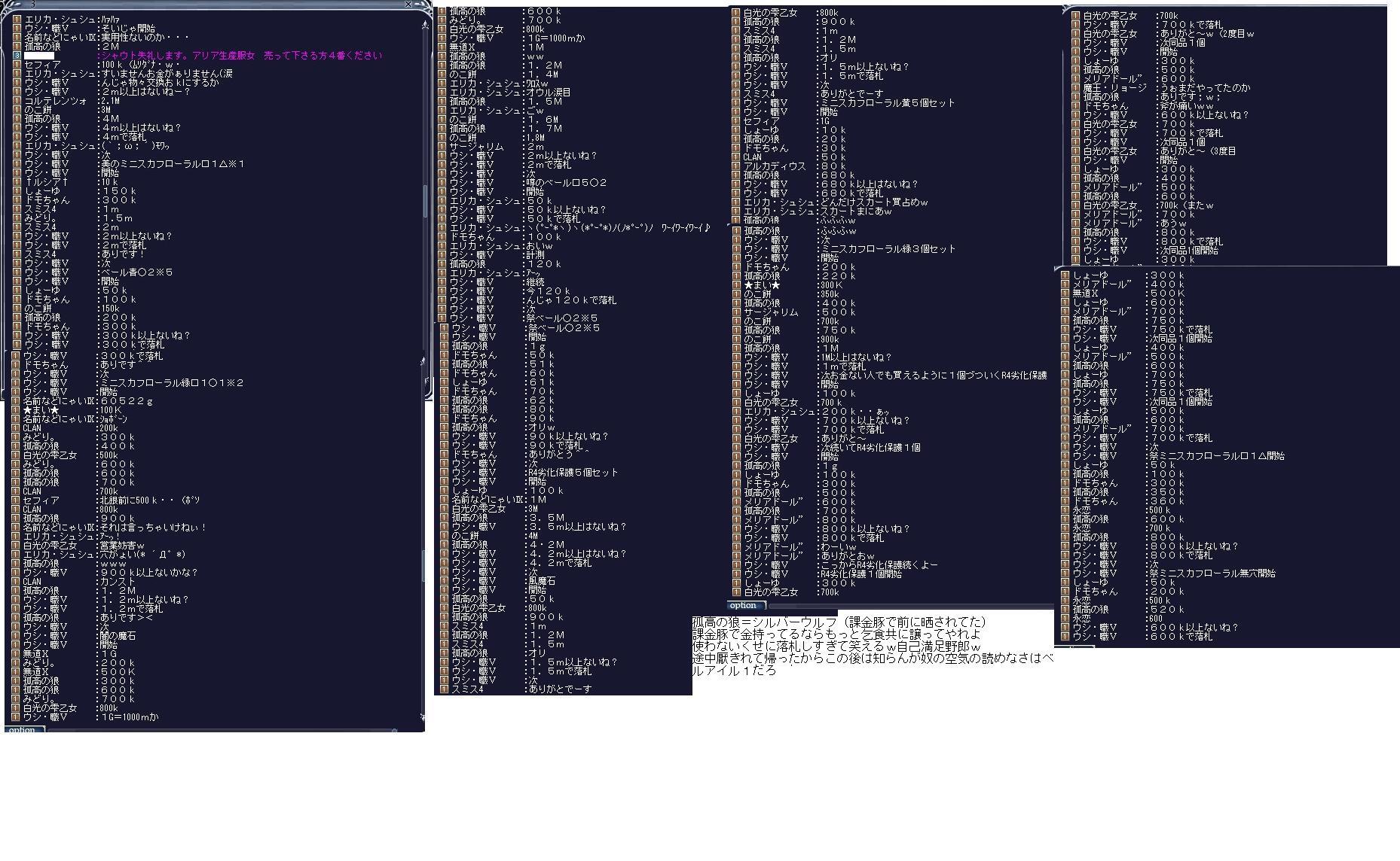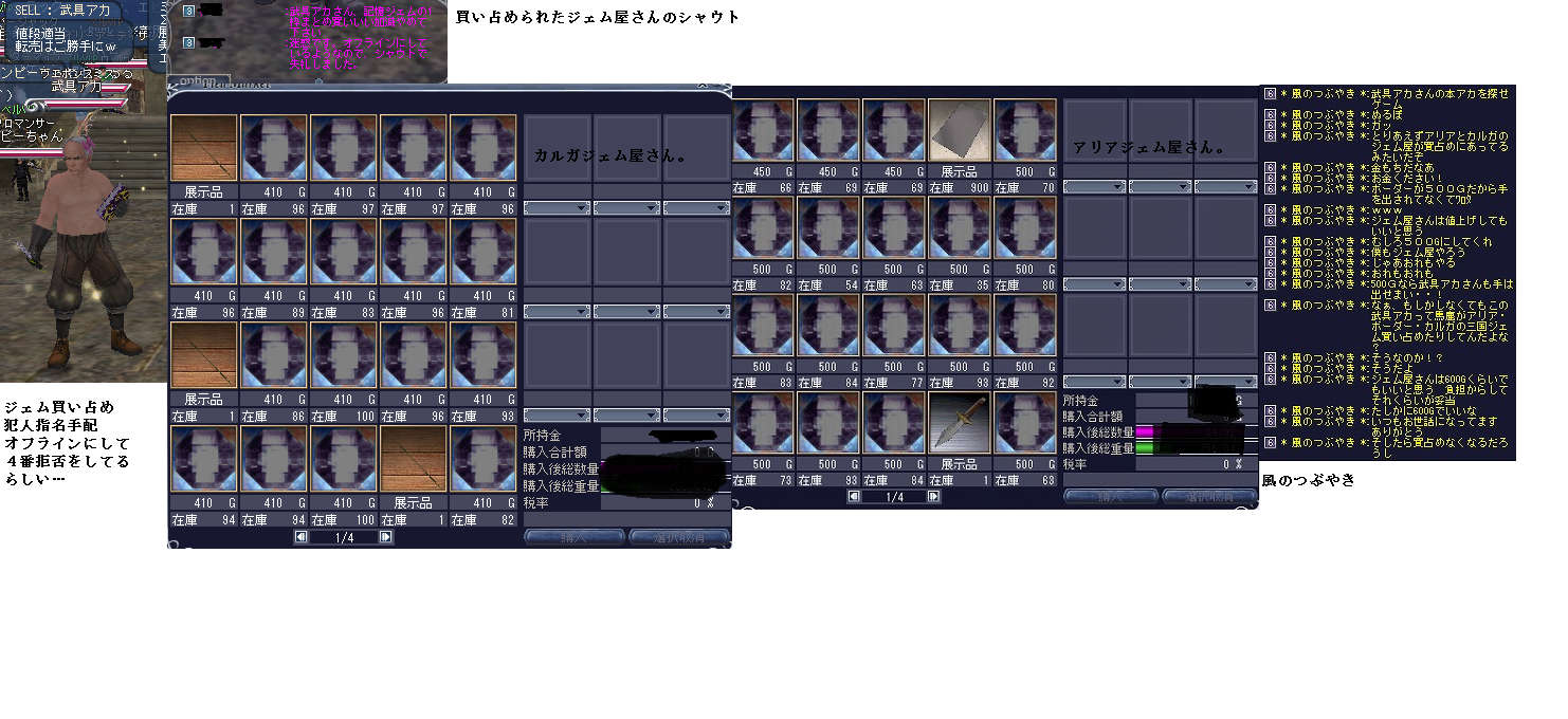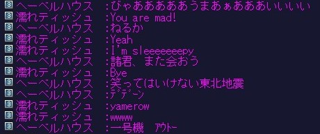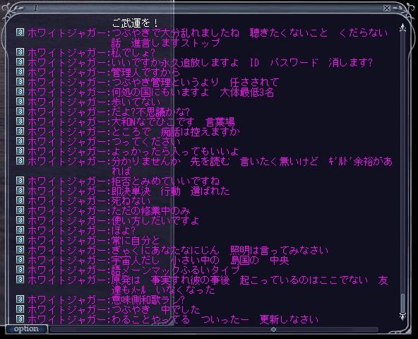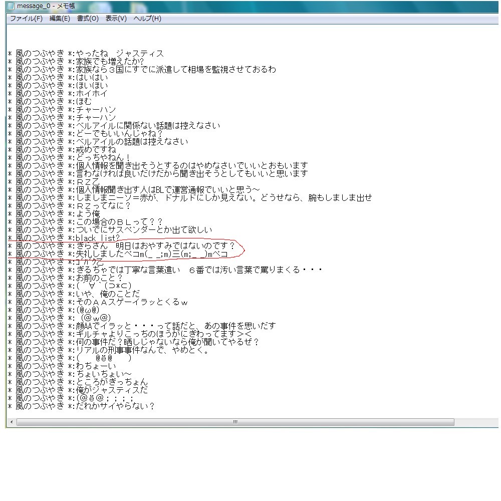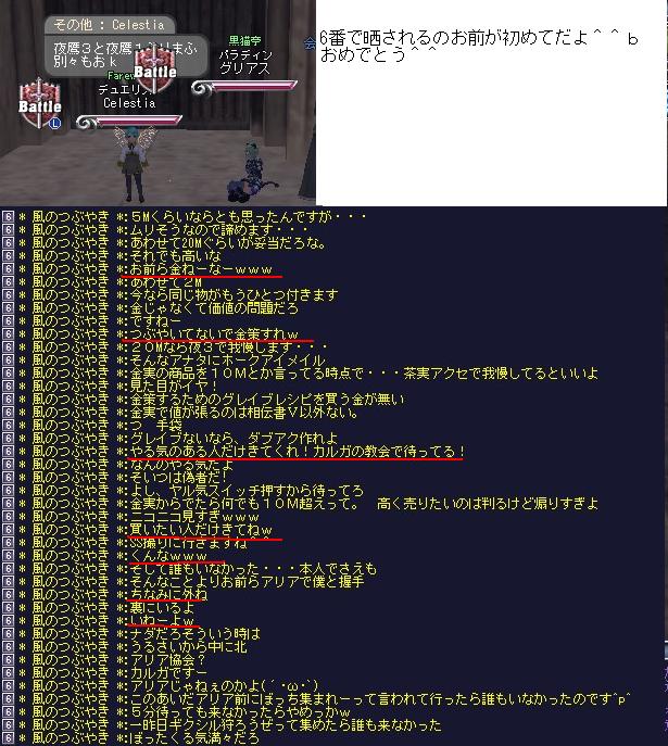 | D | [bi_up3414.jpg] | アリアの糞ギルド | 38kB | 2011/07/31(Sun)14:25 | プロッピー狩りいやがらせ.jpg |
