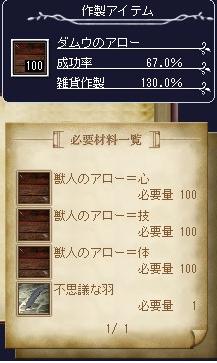 | D | [bi_up3400.jpg] | ダムウのアローレシピ | 18kB | 2011/07/06(Wed)00:47 | ダムウのアロー.JPG |