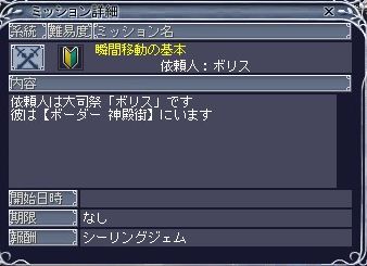 | D | [bi_up3416.jpg] | 初心者ミッション「瞬間移動の基本」 | 19kB | 2011/07/31(Sun)23:34 | いつの間に追加されたんだ.jpg |
