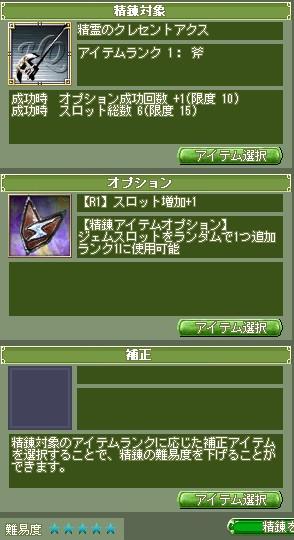 | D | [bi_up3151.jpg] | いきなり難易度5だと!? | 32kB | 2010/01/31(Sun)02:52 | 精錬R1スロット+1検証.JPG |