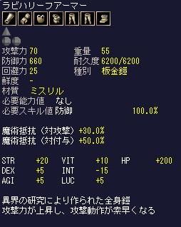 | D | [bi_up3192.jpg] | ラビハリーフアーマー | 19kB | 2010/03/14(Sun)23:57 | ラビハリーフアーマー.JPG |